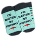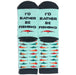 You'd rather be fishing! You don’t have to tell your boss, let your socks do the talking. The geometric fishing lures pattern blends right into the office in stylish colors that’ll have you looking sharp for any situation. These socks sport a funny message on the cuff: “I’d Rather be Fishing.” Made from a luxurious knit cotton that will keep your feet cool and comfortable all day long. Try them on and you’ll be hooked! It's a perfect gift for fishing enthusiasts, Dads, Grandfathers, as a gag gift for your boss, white elephant gift exchanges and more.